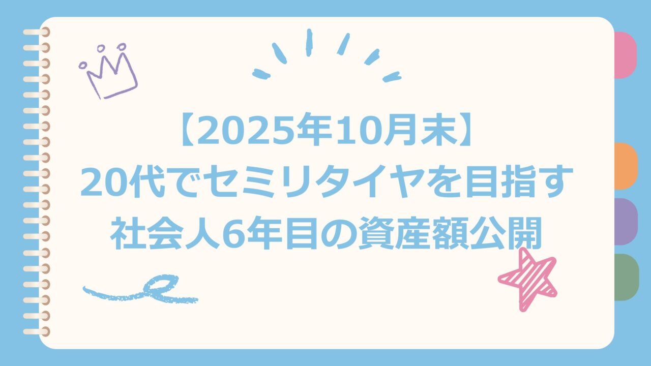 今回は20代でセミリタイヤを目指す27歳サラリーマンの2025年10月末時点の総資産額を公開いたしました。